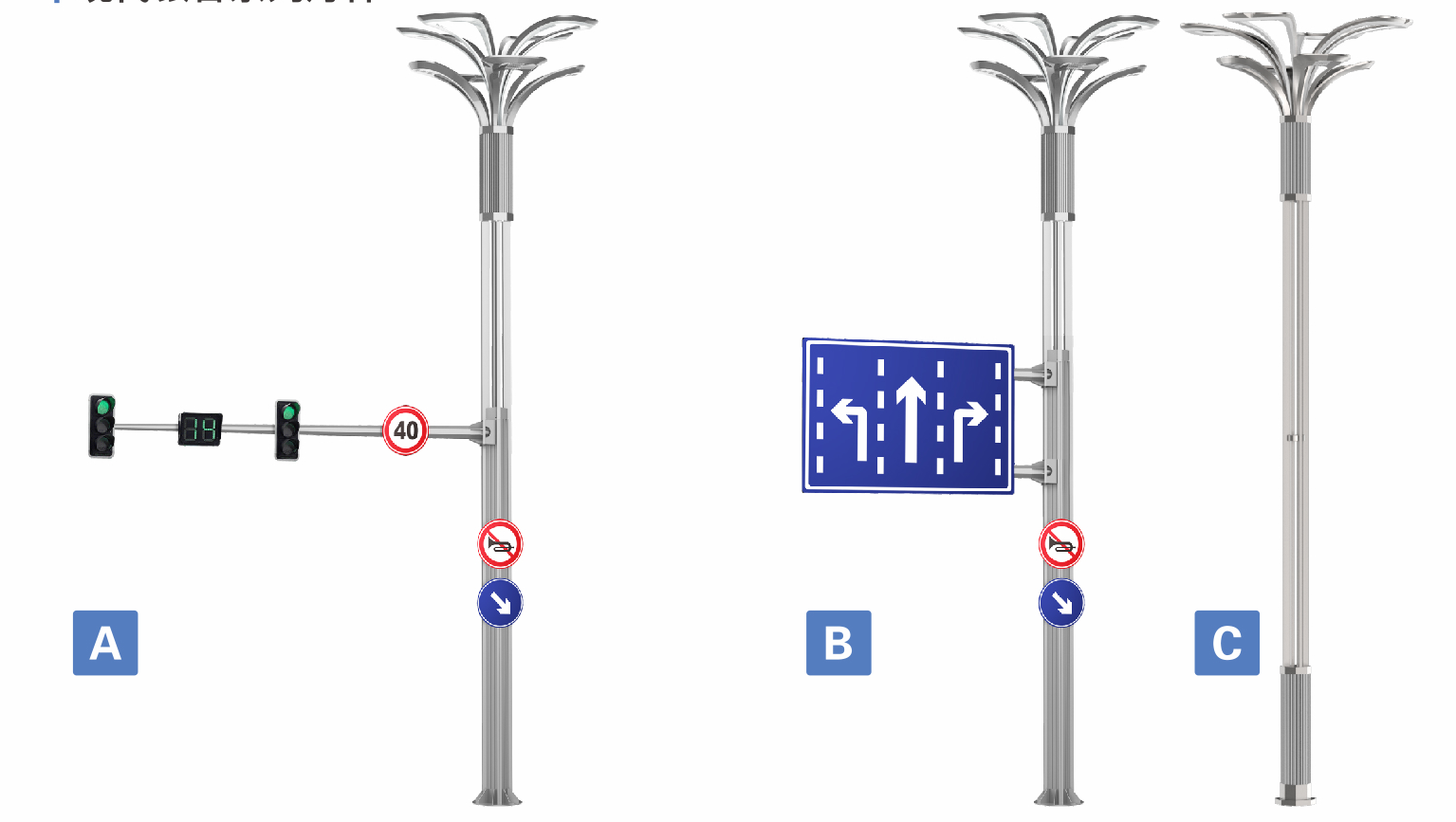 多功能智能桿(又稱智能桿、智慧桿),由桿體、基礎地籠、橫臂、設備倉和智能門鎖等模塊組成,可掛載兩種以上設備,集智能照明、視頻采集、移動通信、交通管理、環境監測、氣象監測、無線電監測、應急管理、緊急求助、信息交互、公共服務等功能于一體,能持續產生或接收信息流的新型基礎設施。