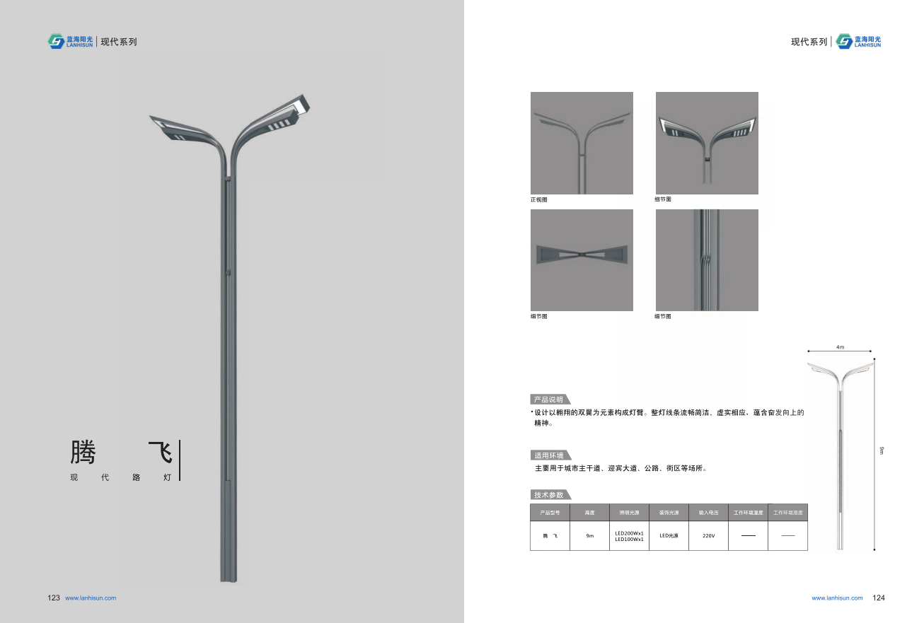 1、高度為6-16米; 2、光源為2組LED光源,色溫2500-6500K,每個光源功率為60-300W,花瓣為2片七彩光環構成; 3、LED驅動電源壽命可達五年; 4、整體熱鍍鋅噴塑,保證燈桿15年不生銹; 5、可以根據使用地區的地域文化、產業特點等進行文化定制;