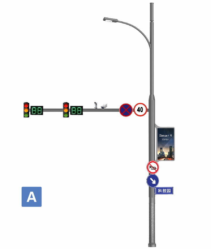 多功能智能桿(又稱智能桿、智慧桿),由桿體、基礎地籠、橫臂、設備倉和智能門鎖等模塊組成,可掛載兩種以上設備,集智能照明、視頻采集、移動通信、交通管理、環境監測、氣象監測、無線電監測、應急管理、緊急求助、信息交互、公共服務等功能于一體,能持續產生或接收信息流的新型基礎設施。