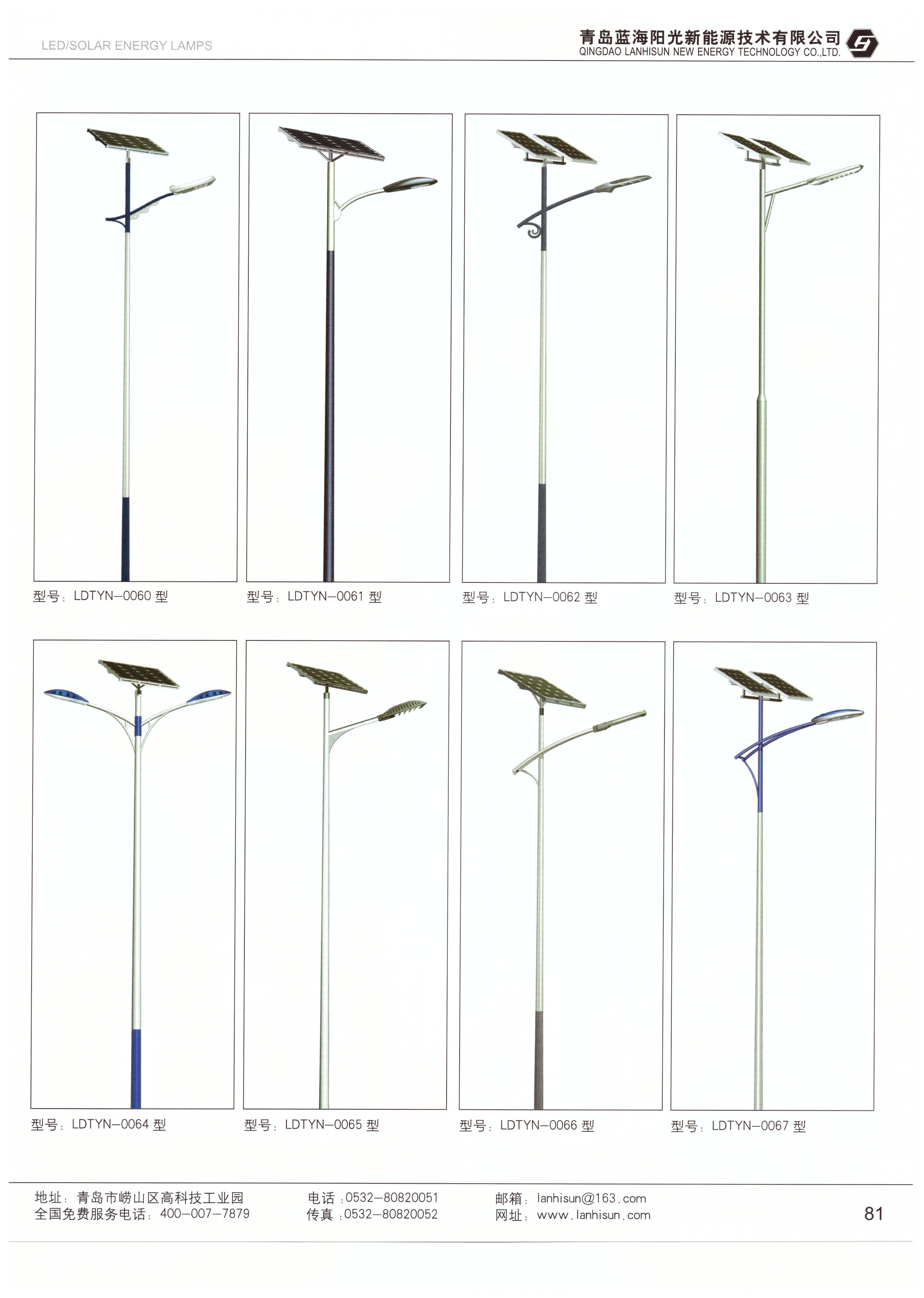 青島藍海陽光能源有限公司專業生產太陽能燈、交通桿