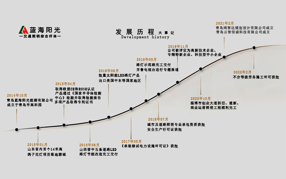 青島藍(lán)海陽光能源有限公司產(chǎn)業(yè)覆蓋照明方案設(shè)計、產(chǎn)品研發(fā)制造、工程項目實施、物聯(lián)網(wǎng)智能管理維護(hù)四大業(yè)務(wù)板塊。是高新技術(shù)企業(yè)。      公司全產(chǎn)業(yè)鏈產(chǎn)品全部由位于“中國路燈生產(chǎn)基地”高郵市的華智光城市建設(shè)(揚(yáng)州)有限公司設(shè)計、生產(chǎn)、制造。