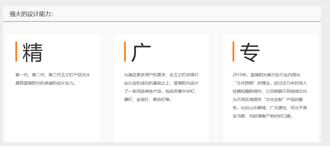 青島藍海陽光能源有限公司設計中心下設方案設計部和機械結構部兩個部門。其中方案設計部負責照明方案及相關產品燈型的設計,機械機構部主要負責各類設計產品的試制。 目前,設計中心提供的設計方案用于全國近30多個城市,經典案例多達100余個,致力于成為國內一流的設計團隊,為客戶提供高品質的設計服務。              青島藍海陽光生產|LED路燈|太陽能路燈|智慧綜合桿|中高桿燈|交通桿件|廠家電話13869896369。